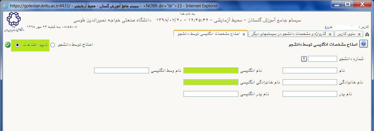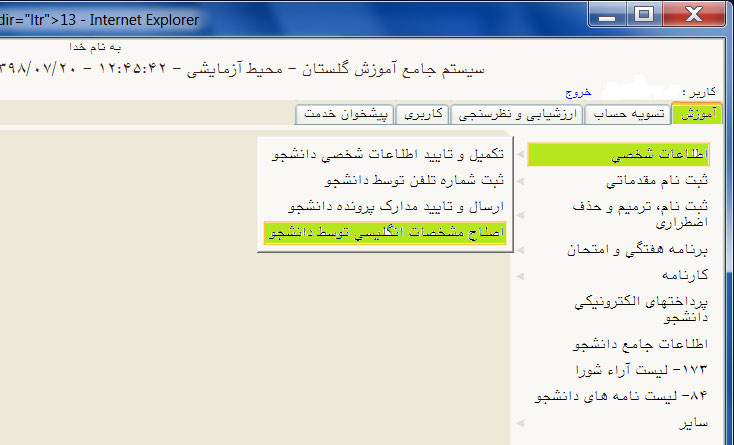 بررسی نام لاتین دانشجو - مركز فناوري اطلاعات